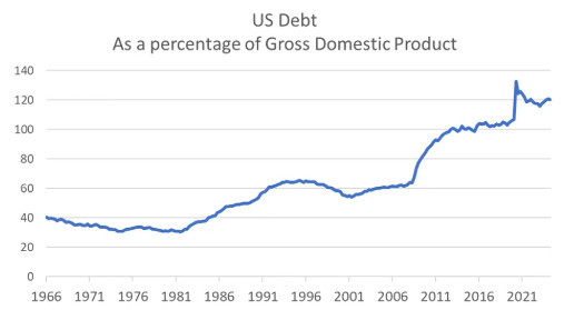 Not all megatrends are positive for investors; one megatrend to be wary of is rising sovereign debt. In many parts of the world fiscal responsibility is no longer a priority as governments focus on more immediate issues and winning elections. In the US the national debt has been rising since the 1980s. In 2010, following the government’s response to the Global Financial Crisis, it first exceeded 90% as a percentage of GDP – the level identified by academics Reinhart and Rogoff as associated with a worsening in growth outcomes. A further spending binge during the 2020 COVID pandemic has resulted in the US national debt rising to more than 120% of GDP.